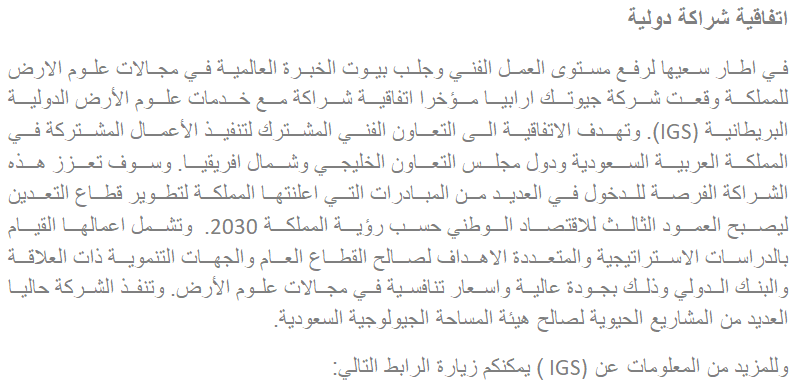 انضمت مؤخرا مجموعة MSAالجنوب افريقية الى قائمة شركاء جيوتك. وتفخر جيوتك باستقطابها لكبرى الشركات العالمية العاملة في مجالات علوم الأرض والتعدين وذلك بالتماشي مع رؤية المملكة 2030 لقطاع التعدين. ان مجموعة MSA التي تعمل في هذا المجال منذ اكثر من 30 عاما حيث قامت بالعديد من المشاريع الناجحة في المملكة وفي العديد من دول العالم. وتقومMSA بالعديد من الاعمال والخدمات منها على سبيل المثال لا الحصر الثروات المعدنية ، والدراسات البيئية، ومختبرات التنقيب اللبي، وادارة البيانات الجيولوجية.